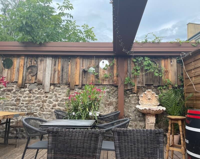 Notre restaurant vous invite à profiter de notre terrasse fleurie à l'arrière, un véritable havre de paix où vous pourrez déguster nos planches à partager (ou pas) tout en profitant du beau temps dans une atmosphère détendue.